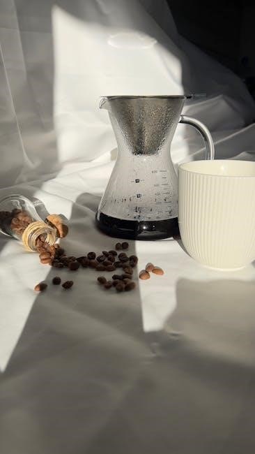 Optimal coffee brewing relies heavily on water quality. Filtered water is highly recommended‚ as tap water often contains chlorine and minerals that negatively impact flavor. Avoid distilled water‚ as it lacks minerals needed for proper extraction. Clean‚ fresh water ensures a purer‚ more flavorful cup of coffee every time.